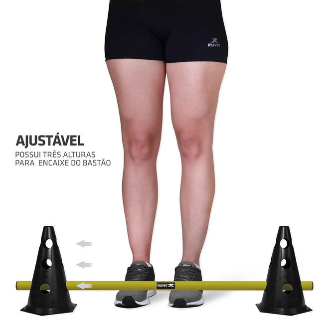 Ajustável para as alturas de 7cm, 14cm ou 19cmDesmontávelPossibilidade de uso dos cones isoladamente em outras atividadesIdeal para treinos de agilidade e velocidadeO Kit Barreiras de Salto com Cone da Muvin Esportes foi desenvolvido para treinamentos funcionais e esportivos, auxiliando no desenvolvimento de agilidade, impulsão e precisão nos movimentos.Resistente e durável, a barreira de salto com cone é composta por dois cones de 24cm e um bastão produzidos em polietileno e PVC rígido.