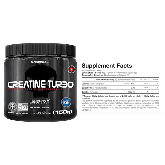 A Creatina Turbo 150g é um nutriente responsável pela geração de energia diretamente ligado aos músculos, ou seja para seus treinos de alta intensidade e curtos, a Creatina é perfeita!