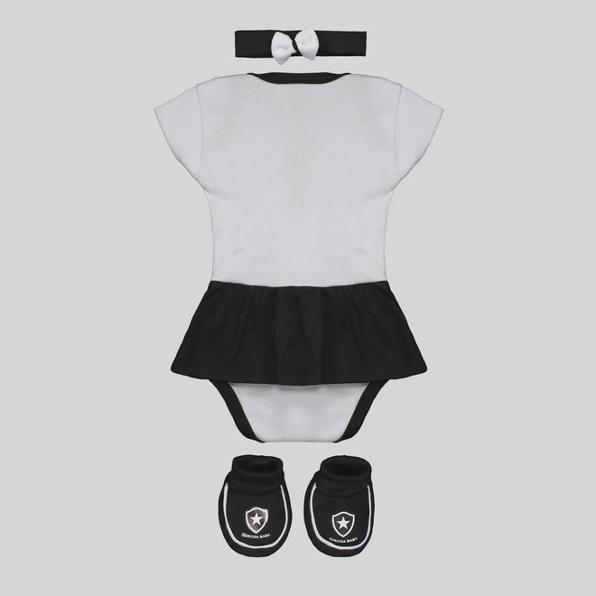 Contém: 01 Body, 01 par de pantufas e 01 faixa para cabeça Composição: 70% Algodão e 30% Poliéster Botões: Sim, entre as pernas Gola: Careca Escudo: Estampado Manga: Curta Dimensões Aproximadas (A x L): 03 MESES - P: 34 x 19 cm 06 MESES - M: 36 x 21 cm 09 MESES - G: 38 x 23 cm 12 MESES - GG: 40 x 25 cm
