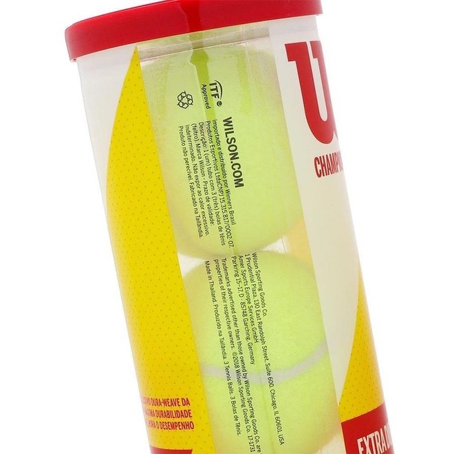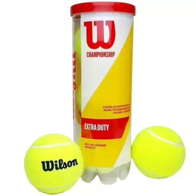 A melhor bola de tênis para amadores, professores e profissionais. A Bola de Tênis Wilson Championship Extra Duty possui uma camada de feltro especial, que proporciona máxima durabilidade e melhora o desempenho durante a prática do esporte. E mais, é ideal para qualquer superfície! Aprovada pela Federação Internacional de Tênis (ITF). - Material: Feltro exclusivo Dura Weave que proporciona alta durabilidade. A Bola de Tênis Wilson Championship é uma bola muito mais durável que as tradicionais, é o modelo ideal para qualquer superfície de quadra, seu feltro exclusivo tem máxima durabilidade e melhora o desempenho do tenista. A Wilson é uma empresa líder na produção e desenvolvimento de produtos esportivos como acessórios para Tênis, Golfe, Futebol Americano, Basquete, Baseball, Vôlei de praia, entre outros esportes, comercializando seus produtos em mais de 120 países ao redor do mundo. Sempre inovadora, seus produtos trazem o que há de melhor em tecnologia. Conteúdo da Embalagem: 3 Tubos com 3 Bolas dentro de cada tubo totalizando 9 bolas no total.ref: M105R2