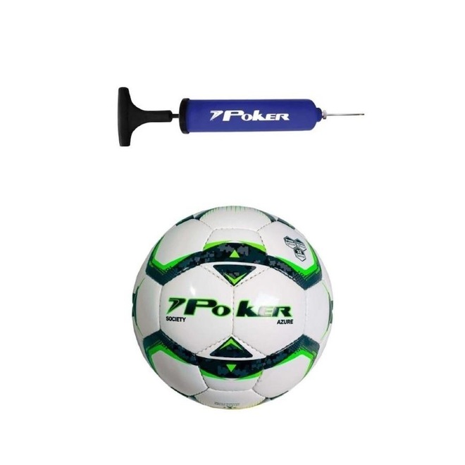 Kit Bola Futebol Society Poker Extra 32 Gomos Azure + Bomba de Ar Azul