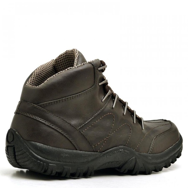 Solado em borracha e sistema de amarração por cadarços são responsáveis pela segurança ao caminhar.