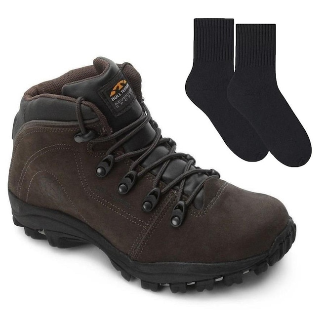 Kit Bota Bull Terrier Fox Terrier II Masculina + Par de meia é a escolha ideal para quem busca leveza e resistência em suas aventuras esportivas ao ar livre, como práticas de Outdoor e Trilha, com total segurança. Seu design arrojado e moderno é aliado a um cabedal de couro, proporcionando durabilidade excepcional. A palmilha Ortho Comfort em EVA duplo é anatomicamente moldada, apresentando propriedades bactericidas e orifícios que promovem a respirabilidade, prevenindo fungos e odores desagradáveis. O solado de borracha incorpora a tecnologia Power grip, oferecendo durabilidade e aderência superiores em terrenos acidentados. O fechamento em cadarço proporciona ajuste personalizado e segurança durante suas atividades. Já as meias, por sua vez, são fabricadas a base de algodão e poliamida, fornecendo maior frescor e um toque suave aos pés. Possui cano médio, garantindo maior proteção, além de contar com sola atoalhada e costuras reforçadas, concedendo maior durabilidade a peça. O tamanho da meia pode variar de acordo com a numeração da bota.