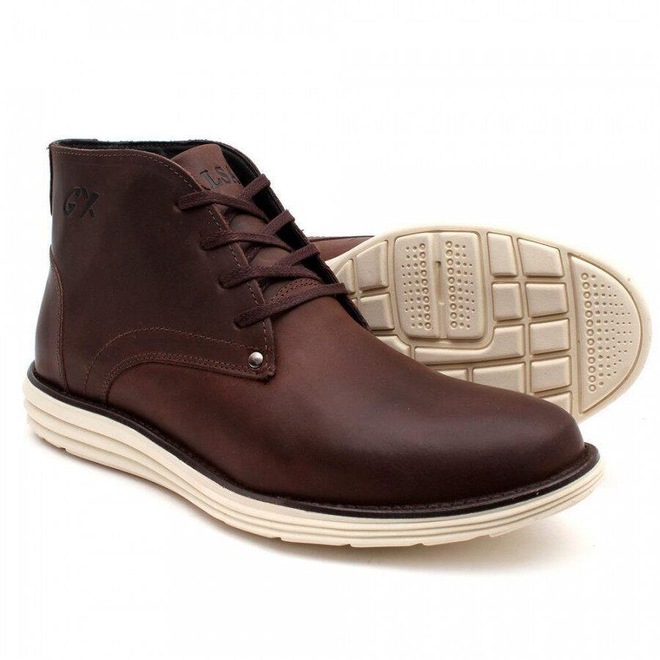 Característica do Produto 1: Bota masculina confeccionada em couro que garante maior durabilidade, conforto e resistência, solado em borracha que proporciona maior segurança e aderência ao caminhar, cano médio, palmilha leve, macia e acolchoada.
