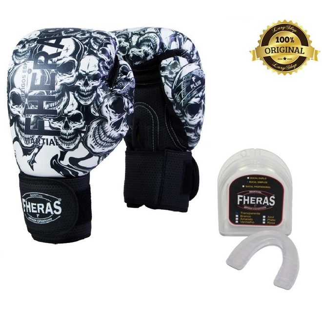 Kit Boxe Muay Thai Fheras: Luvas New Top + Protetor Bucal 00 Oz Brasil - Adulto