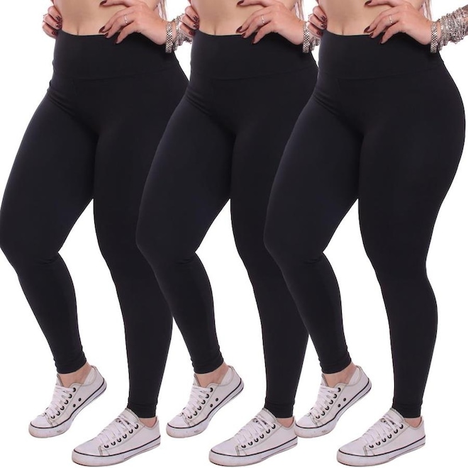 Kit Calças Legging Dellas Fit Zero Transparência Proteção Uv Academia Treino - 3 Unidades - Feminina