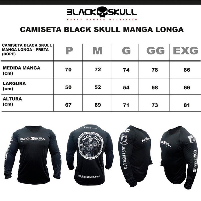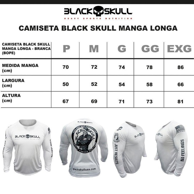 Kit Camiseta Black Skull Manga Longa Soldado Bope - 2 Unidades - Masculina