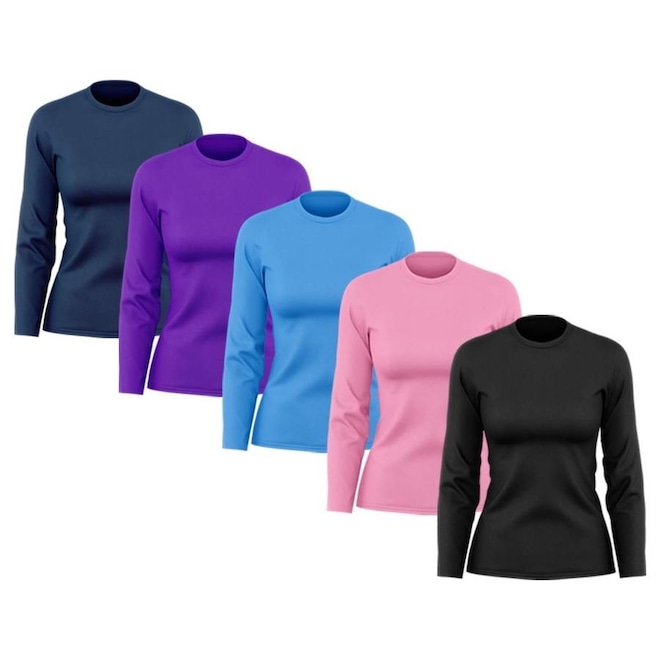 Kit Camisetas Térmica Adriben Dry Fit com Proteção Solar UV Manga Longa - 5 Unidades - Feminino