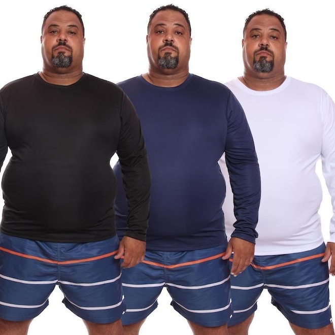 Kit de Camisas Térmica Dellas Fit Dry Fit Plus Size Manga Longa com Proteção Solar Uv - 3 Unidades - Masculina