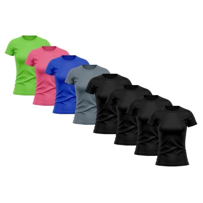 Kit Camisetas Whats Wear Dry Fit com Proteção Solar UV - 8 Unidades - FemininaCamiseta Feminina Dry Fit Proteção Solar UV Básica Lisa Treino Academia Passeio Fitness Ciclismo