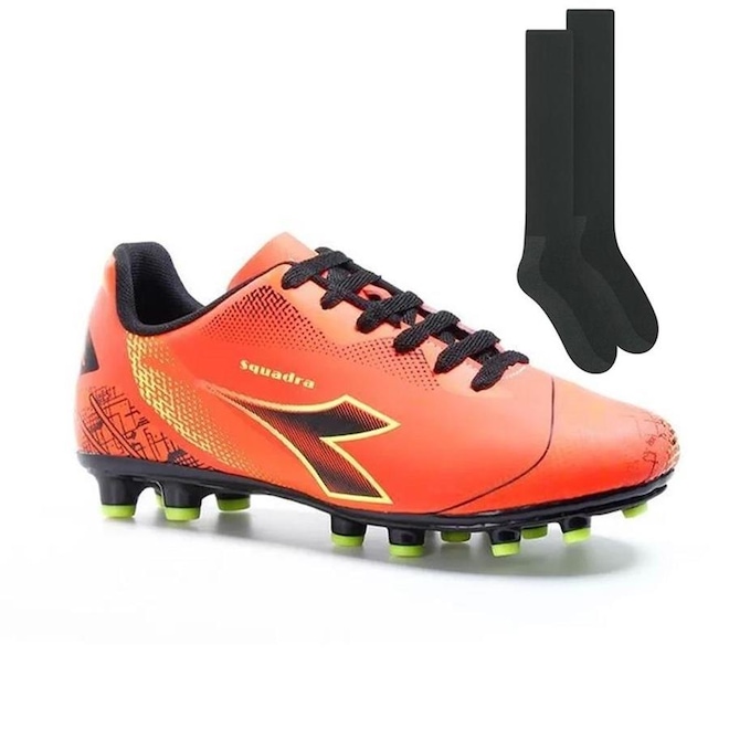 Chuteira de Campo Diadora Squadra + Par de Par de Meião - Adulto