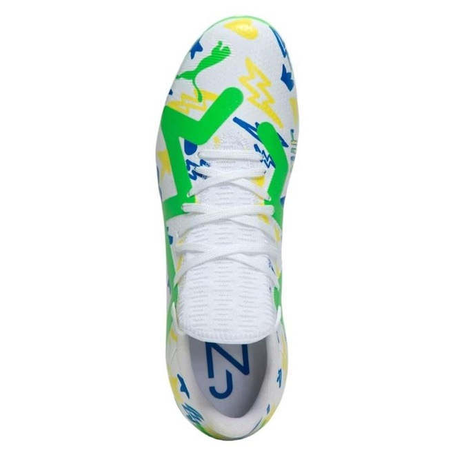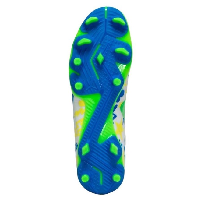A chuteira Puma Future Play Neymar Júnior é a escolha perfeita para quem adora futebol e quer se destacar em campo. O cabedal é de material sintético e com texturas que auxiliam em uma melhor aderência com a bola, além disso, possui desenhos feitos por onze crianças do Instituto Neymar Júnior que demonstram a sua admiração pelo jogador. A sola é de borracha e possui tecnologia Dynamic Motion System, aumentando a agilidade em campo. A peça possui também a lingueta em tecido interligada ao cabedal que proporciona mais conforto e amarração por cadarço que garante o ajuste ideal As travas são emborrachadas altas e fixas. Referência: 107800 01