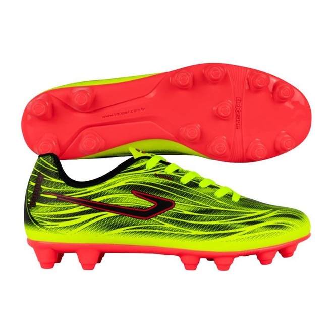 Solado: PVC com travas fixas para excelente aderência e estabilidade em campos.