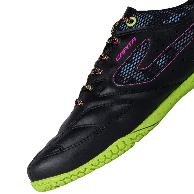A linha Capita é desenvolvida para atender ao perfil de jogador que valoriza uma chuteira com alto apelo visual e diversificação de materiais. O cabedal é composto por 2 materiais principais: a gáspea traz um sintético com toque nobuck, que proporciona resistência e mais durabilidade na área de chute. O nobuck, além de um papel funcional, tem grande apelo visual e tátil. Na parte traseira é utilizado um tecido com tramas e o espaçamento ideal para proporcionar ventilação e ao mesmo tempo, gerar sustentação do calcanhar. A união desses 2 tecidos, entrega um visual muito nobre para Capita. Possui a palmilha em EVA para amortecimento e conforto durante todo o jogo. Conta com as tecnologias T-Adapt e T-Support, que garantem maior controle e toque na bola. O solado de borracha traz o equilíbrio ideal para o misto de cores presentes no cabedal além de contar com as tecnologias FlexZone que oferece uma excelente aderência ao solo, maciez e flexibilidade e Easymove que proporciona flexibilidade e liberdade de movimentos. Marque aquele gol de placa com a chuteira Futsal Capita III e leve seu time a vitória. Não perca mais tempo e garanta já a sua!!!