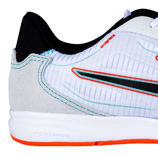 A Chuteira Letra IV foi desenvolvido para o jogador que valoriza atributos como leveza e ventilação. Para atendê-los, o cabedal é desenvolvido com tecido em Nylon que deixa a chuteira mais leve e com mais ventilação interna, quando comparada à chuteiras em sintético ou couro. A biqueira e outras áreas estratégicas do cabedal que tem constante contato com a bola, contam com peças de camurça para aumentar a resistência, durabilidade, estruturação e segurança para o atleta realizar os movimentos de jogo. A entressola é Full Eva + Borracha, para entregar o amortecimento na medida certa. Compre Já a Chuteira Futsal Letra IV da Topper e complete seu uniforme de jogo e marque esse golaço!