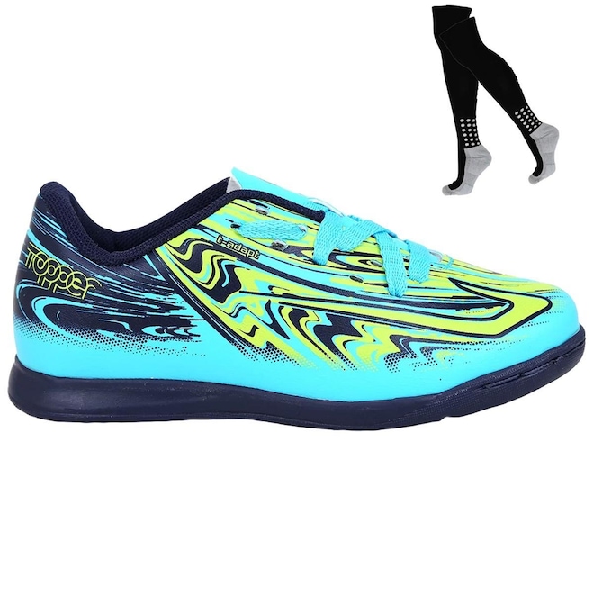 Domine a partida e mostre seu futebol com a Chuteira Futsal Topper Strike V! Aliada dos jogadores habilidosos que procuram leveza e rapidez, essa chuteira futsal Topper apresenta cabedal em sintético que oferece conforto e maciez, além de solado feito em borracha antiderrapante para quadras indoor e outdoor. Possui grafismos e cores vibrantes, que se destacam e fazem o futebol ainda mais bonito. Sua palmilha confeccionada em material resistente que fornece amortecimento e conforto durante todo o jogo. Seja na hora de marcar um gol decisivo ou criar uma jogada espetacular, essa chuteira proporciona o equilíbrio perfeito entre desempenho, conforto e estilo, permitindo que os jogadores alcancem todo o seu potencial e dominem o jogo.