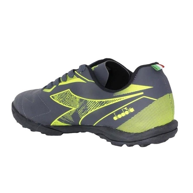 Apresentamos a Chuteira Society Diadora Torneo Infantil, uma escolha perfeita para os jovens craques que buscam desempenho e design incríveis. Cabedal resistente em material sintético para maior durabilidade. Solado de borracha com travas fixas para campos society, fornecendo excelente tração e estabilidade no campo. Fechamento com cadarço para um ajuste seguro e personalizado. Palmilha em EVA para conforto a cada passo. Lingueta fina e flexível para facilitar o cálculo. Forro têxtil que mantém os pés confortáveis durante toda a partida. Além do desempenho impecável, o design cinza escuro e verde neon da Diadora Torneo vai fazer você se destacar no campo, combinando estilo e funcionalidade em um único calçado. Referência: DFAF107-04. Já o meião, por sua vez, é confeccionado a base de poliéster e elastano, o que garante a mais alta resistência ao desgaste, aumentando assim a sua durabilidade. Sua construção conta com faixa tensora para os tornozelos, aumentando a segurança durante o uso, evitando torsões e lesões. Além de fornecer maior respirabilidade, o meião conta com a numeração acompanhando o calçado, perfeito para acompanhar os jogos dos pequenos.ref: M12LLO