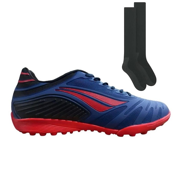 Apresentamos a fantástica Chuteira Penalty Society Matis Y-2 - Referência: 242264.6195! Projetada para os jogadores que buscam conforto, estilo e um desempenho excepcional no futebol. O cabedal sintético de alta qualidade proporciona um ajuste perfeito aos pés, oferecendo conforto e flexibilidade durante as partidas. O solado emborrachado, com travas baixas e fixas, foi especialmente desenvolvido para o futebol de sociedade, proporcionando tração e estabilidade em quadras próprias para o esporte. Com fechamento em cadarço, a Chuteira Penalty Society Matis Y-2 permite um ajuste personalizado, garantindo suporte e segurança aos seus pés durante os momentos mais intensos do jogo. A palmilha em EVA oferece amortecimento adicional, proporcionando conforto e absorção de impacto. O modelo Penalty Society Matis Y-2 apresenta um design moderno e arrojado, combinando as cores , e , que certamente irão destacar-se no campo. Essa chuteira é indicada especialmente para o futebol de society, entregando um desempenho excepcional em cada jogada, drible e chute. A língua fina e flexível proporciona liberdade de movimento, evitando desconforto ou irritações durante o jogo. O forro em material têxtil proporciona uma sensação suave e agradável ao toque, mantendo seus pés frescos e confortáveis. Referência: 242264.6195. O Meião de futebol é ideal para quer completar seu uniforme para suas partidas. Este meião foi produzido em um tecido especial de poliamida com poliéster e elastano, por isso, ele é perfeito para quem busca uma peça elástica e ao mesmo tempo extremamente leve e muito confortável. Seu design traz uma única cor, possibilitando assim, uma maior versatilidade ao montar seus uniformes. Medida Aproximada (cm): 39-43: 22x44x10 (Comprimento do Pé x Altura do Cano x Largura do Cano).ref: M0ZSBG