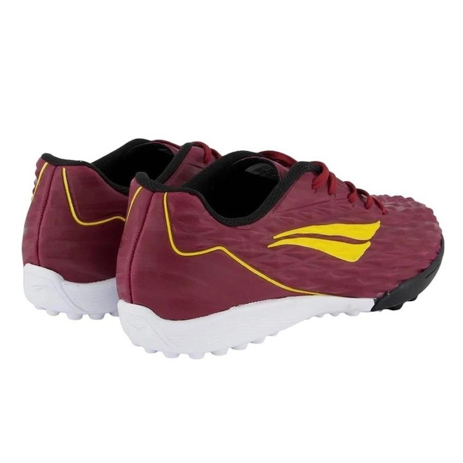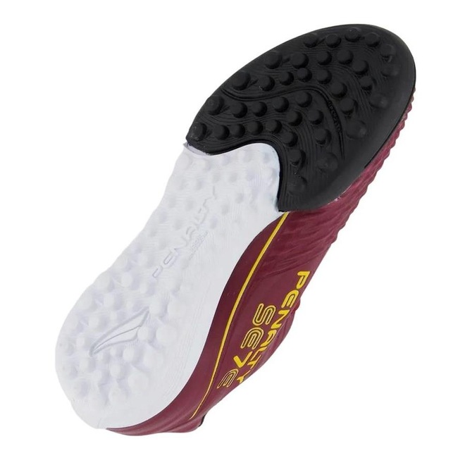 Com a Chuteira Society Penalty Se7e XXI Kids, os pequenos serão os craques da próxima pelada na grama sintética. O modelo de material sintético texturizado é leve e resistente, auxiliando no domínio da bola. Traz a tecnologia Anatomic Sys, recortes anatômicos que permitem o encaixe perfeito do pé, além de flexibilidade total. Possui fechamento por cadarço e palmilha removível. A entressola de EVA possui as tecnologias Neo Chushion e Hiperflex, canaletas posicionadas estrategicamente para redução de impactos e movimentação dos pés. O solado totalmente de borracha conta com pequenas travas anatomicamente posicionadas para melhor tração e aderência ao gramado artificial. Design irreverente com texturas especiais nas cores bordô e detalhes em amarelo. Já o meião, é confeccionado em materiais resistentes e traz a tecnologia Flot que proporciona maior ventilação, aumentando a respirabilidade. Seu tecido é um isolante térmico e conta com faixa tensora nos tornozelos para mais proteção. ideal para o uso entre os tamanhos 33 ao 38. Referência: 246215.4102. TECNOLOGIAS Neo Cushion: Canaletas posicionadas entressola em EVA, reduz o impacto durante a movimentação do atleta, ajudando na prevenção de lesões, desgaste nos joelhos e articulações. Hiperflex: Canaletas posicionadas estrategicamente para auxílio na flexão e movimentação dos pés. Anatomic Sys, recortes anatômicos que permitem o encaixe perfeito do pé, além de flexibilidade total.ref: M0Z9SC