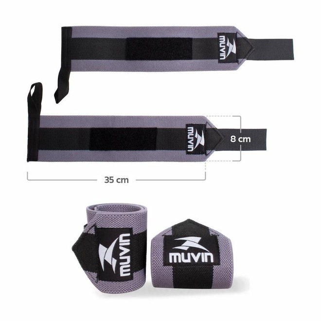 Kit Cinturão de Musculação e Munhequeira Elástica Curta Muvin