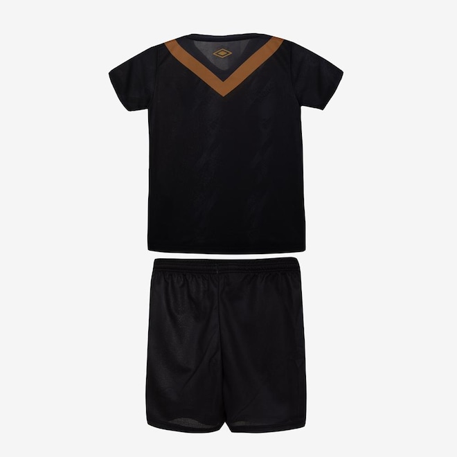 O Kit Clube Infantil Umbro Cap Of.3 2024 apresenta um design exclusivo que combina perfeitamente as cores preto e dourado, proporcionando um visual moderno e elegante.
