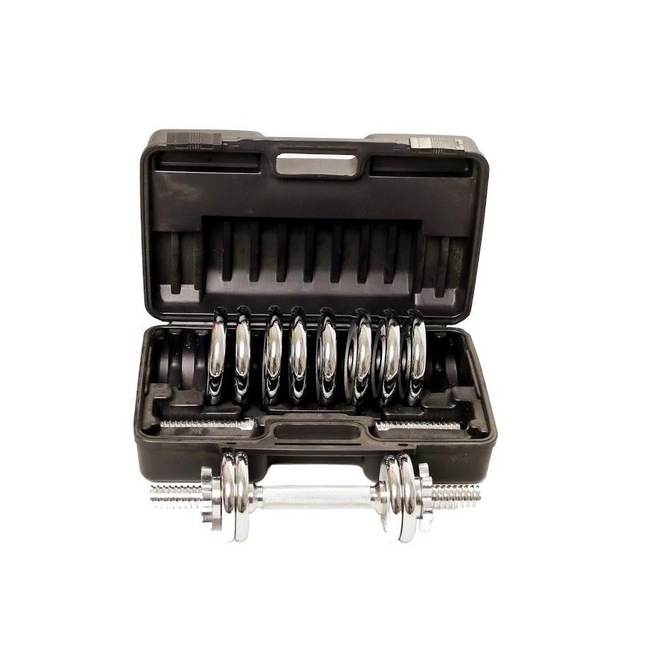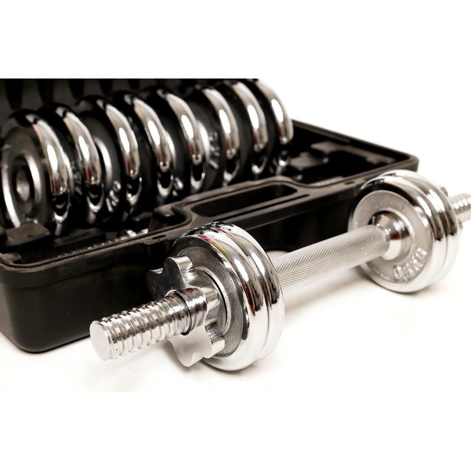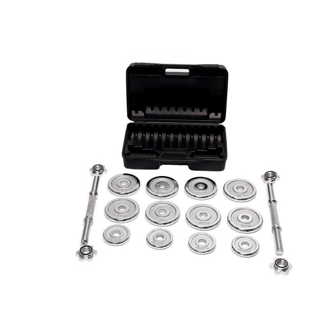 O kit halteres vem com barras para halteres, porcas rosqueadas e as Anilhas cromadas que deixam a maleta mais bonita e saem do padrão de Anilhas pretas.Elaboramos essa maleta com:12 Anilhas Cromadas em Ferro Fundido, sendo:-8 Anilhas de 1kg cada-4 Anilhas de 0,5kg (500 gramas) cada-4 roscas estrelas-2 Halteres de 35cm barra maciça com pegada riscada-1 maleta para transportar o kit para onde quiserCada halter tem um espaço de 10cm em cada extremidade e as roscas estrelas vão te brinde para ajudar na fixação das Anilhas.Nós da WCT Fitness desenvolvemos uma pegada riscada nos halteres para que a sua mão não escorregue durante o treino, isso dará mais garantia e segurança no treinamento mesmo se você estiver com a mão suada.
