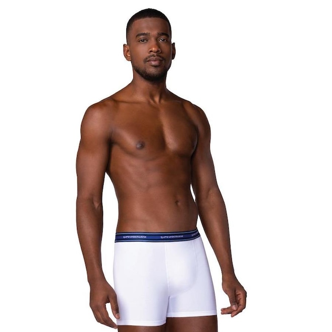 O Kit Cueca Boxer Lupo garante conforto e qualidade, aposta certa para todos os momentos. Confeccionada em algodão, tem caimento leve, modelagem lisa e exibe elástico na cintura com o logo da marca. Este kit