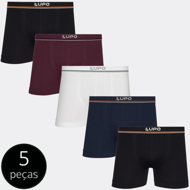 Cueca Boxer Lupo Esportiva sem Costura - Adulto - 5 unidades