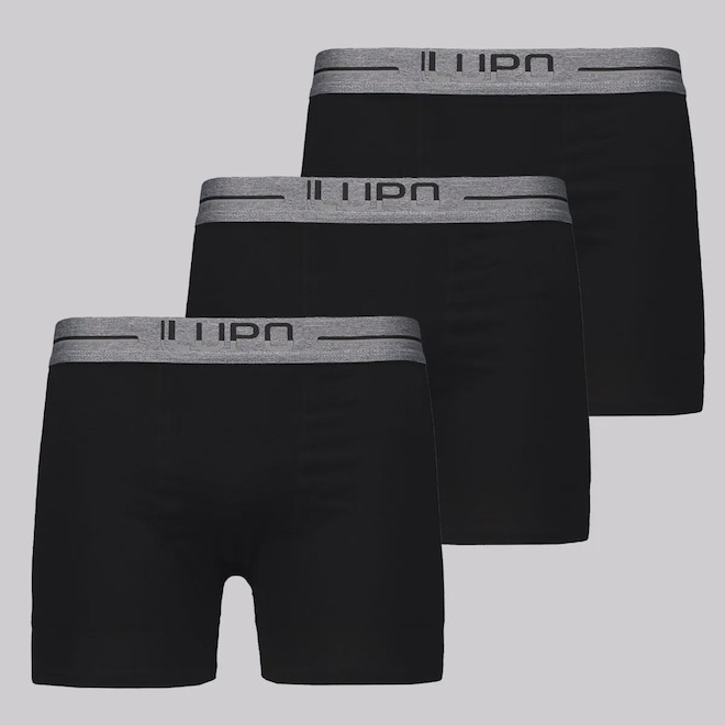 Contém: 03 cuecas pretasComposição: 95% Algodão e 05% ElastanoAjuste: Elástico reforçadoIndicado para: CasualGênero: MasculinoOrigem: NacionalLogo: EstampadaDimensões aproximadas (A x L):P: 29 x 36 cmM: 31 x 38 cmG: 33 x 40 cmGG: 35 x 42 cm