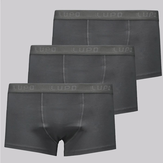 Composição: 95% Algodão e 05% ElastanoCor predominante: ChumboIndicado para: CasualContém: 03 unidadsOrigem: NacionalLogo: EstampadaAjuste: ElásticoCostura: NãoDimensões aproximadas (A x L):P: 19 x 40 cmM: 21 x 42 cmG: 23 x 44 cmGG: 25 x 46 cm
