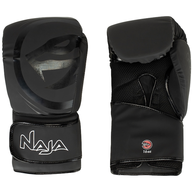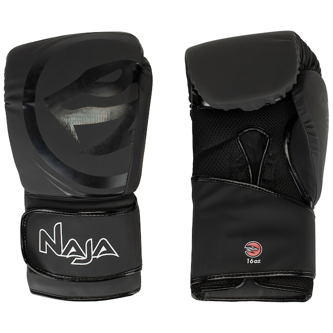 Confira o Kit de Boxe Naja: Bandagem + Protetor Bucal + Luvas de Boxe Black - 16 OZ - Adulto!