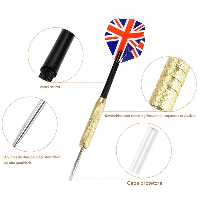 Com cobre chapeamento agulha e serrilhado para controle extra, este dardo é certo para