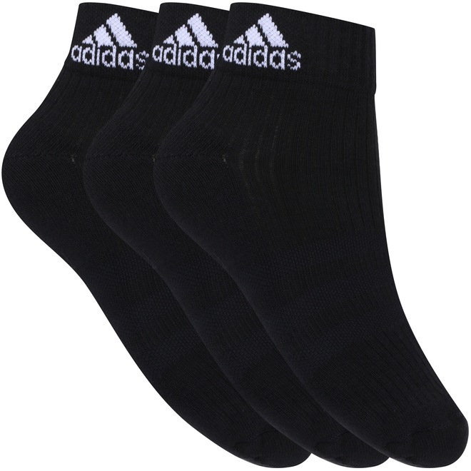 Confira o Kit de Meia adidas Ankle MID Cushion 3S com 3 Pares - Adulto!