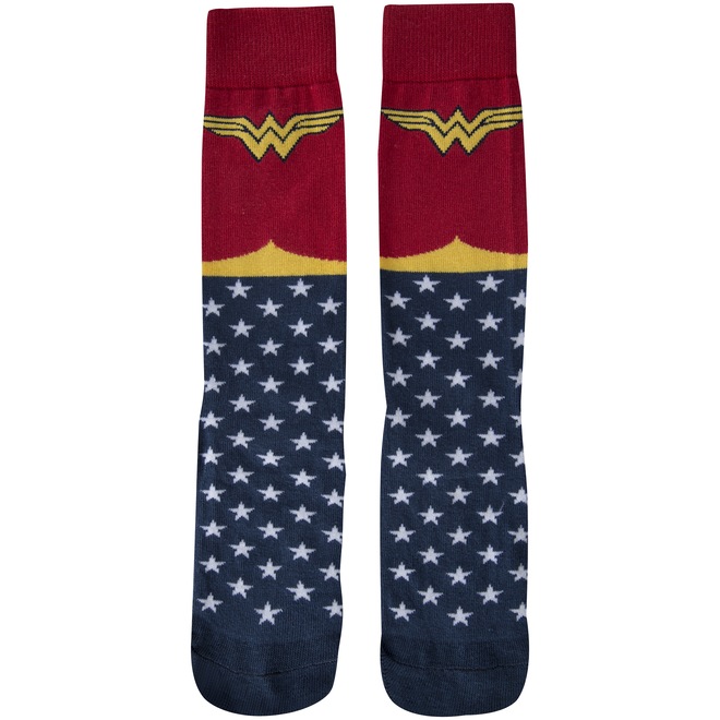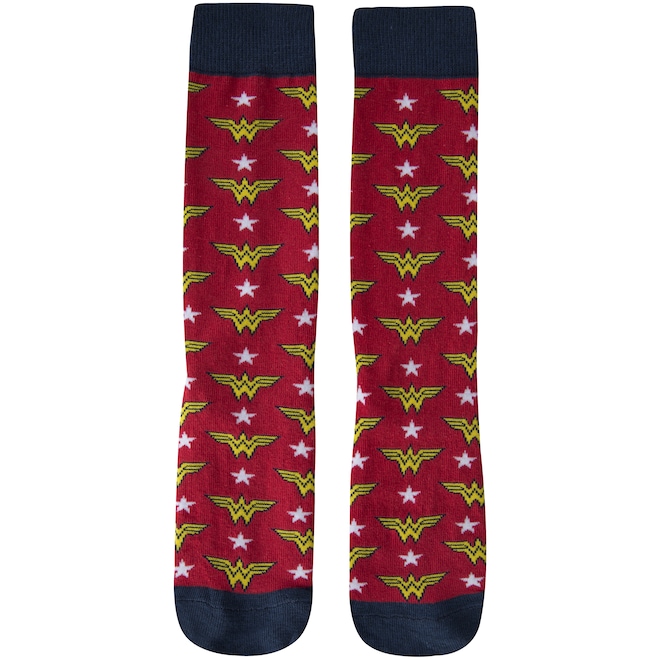 Empodere o look casual com atitude e um estilo divertido vestindo esse Kit de Meias Cano Alto Liga da Justiça Mulher-Maravilha!