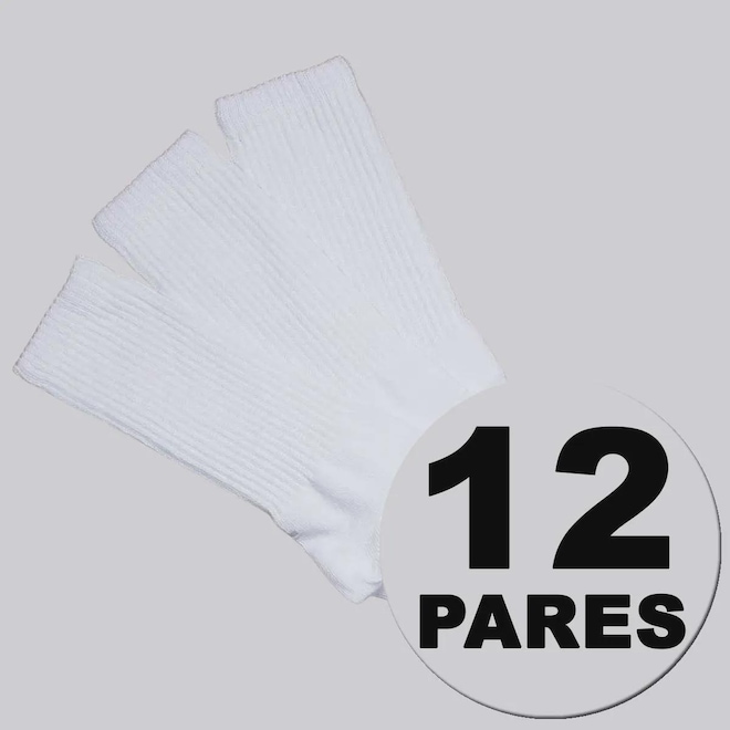 Composição: 80% Algodão, 17% Poliamida e 03% Outras Fibras Cor predominante: Branca Indicada para: Treino Origem: Nacional Contém: 12 pares Cano: Alto