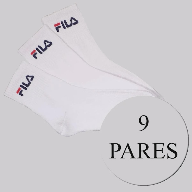 Composição: 75% Algodão, 22% Poliéster, 02% Elastano e 01% Elastodieno Contém: 09 pares na cor branca Origem: Importada Gênero: Unissex Cano: Médio