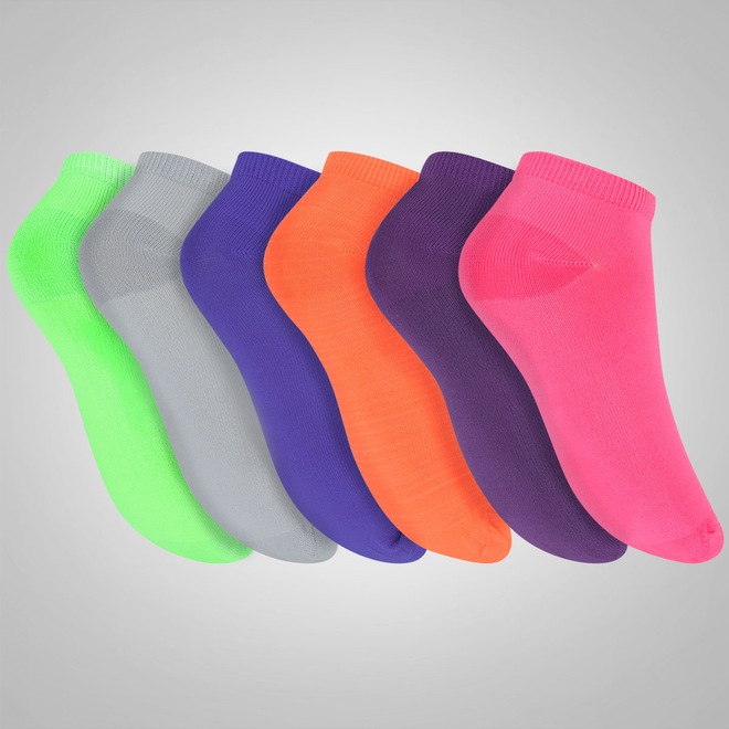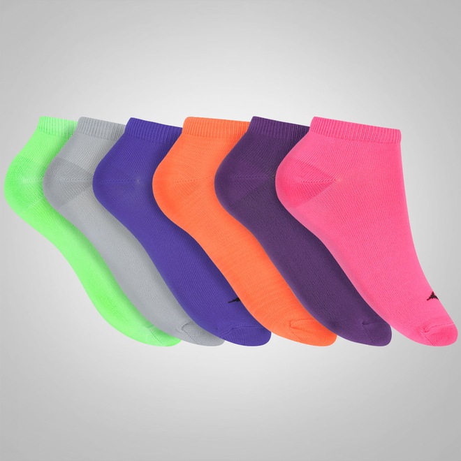 Kit de Meias Mizuno Invisível Neon com 6 Pares - Feminino - Foto 1