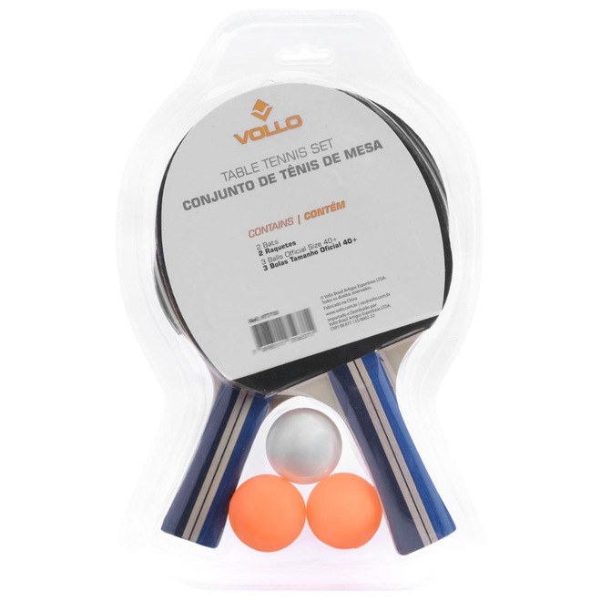 - Detalhamento: Contém 02 raquetes para jogadores iniciantes, 03 bolas Vollo Pro 40+ com diâmetro da 40mm tamanho oficial;