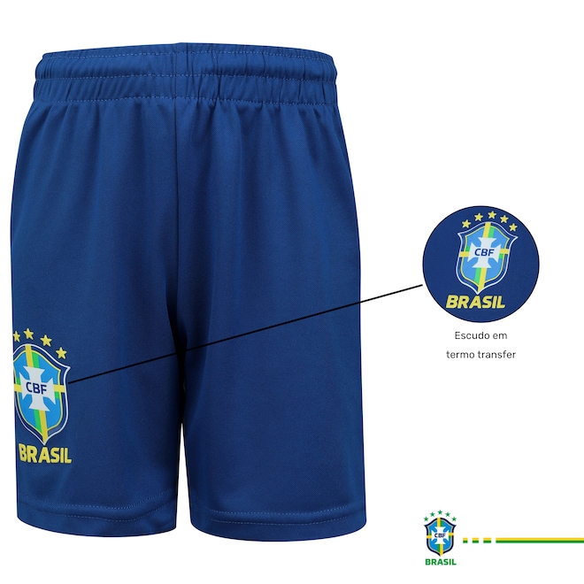 Por isso, nossos pequenos merecem estar vestidos adequadamente para esse evento. O Kit de Uniforme possui Calção e Camiseta da Seleção Brasileira CBF.