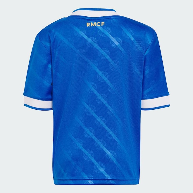 Em casa, de azul. Este terceiro uniforme infantil vem em uma tonalidade que é muito querida pelos torcedores madridistas e dos Três Listras. Com uma cor clássico da adidas Originals e uma sutil referência à identidade do Bernabéu, é o tom perfeito para celebrar a parceria definitiva no futebol. Incluindo uma camisa, shorts e meias, esse conjunto infantil garante que os jovens torcedores mantenham o corpo seco, confortáveis e concentrados em sua paixão.