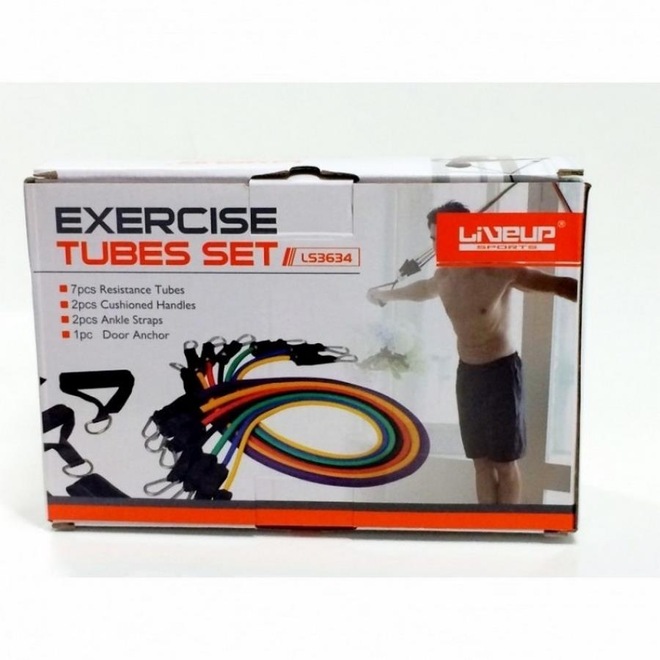 Kit Extensor Liveup com 7 Elásticos para Exercícios de Fortalecimento LS3634