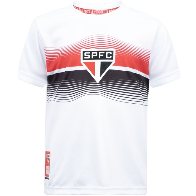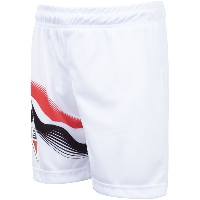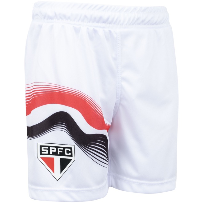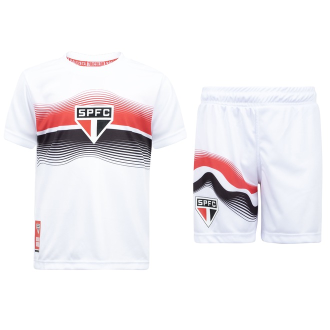 O Kit Fardamento do São Paulo Infantil composto por uma camiseta e um calção, com o emblema do São Paulo Futebol Clube