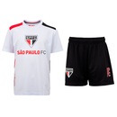 Composto por uma camiseta e um calção, este conjunto replica o uniforme oficial do São Paulo, ideal para treinos ou brincadeiras.