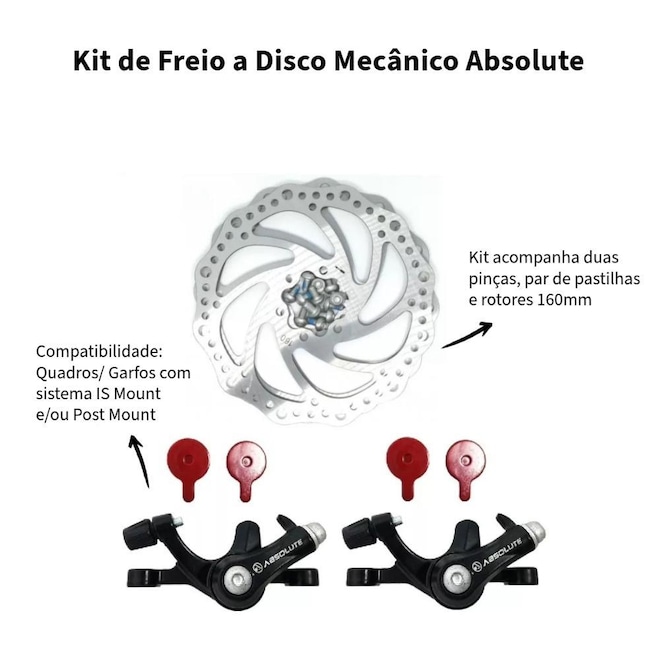 Kit Freio Disco Bike Disco Mecânico Pinças Rotor Absolute