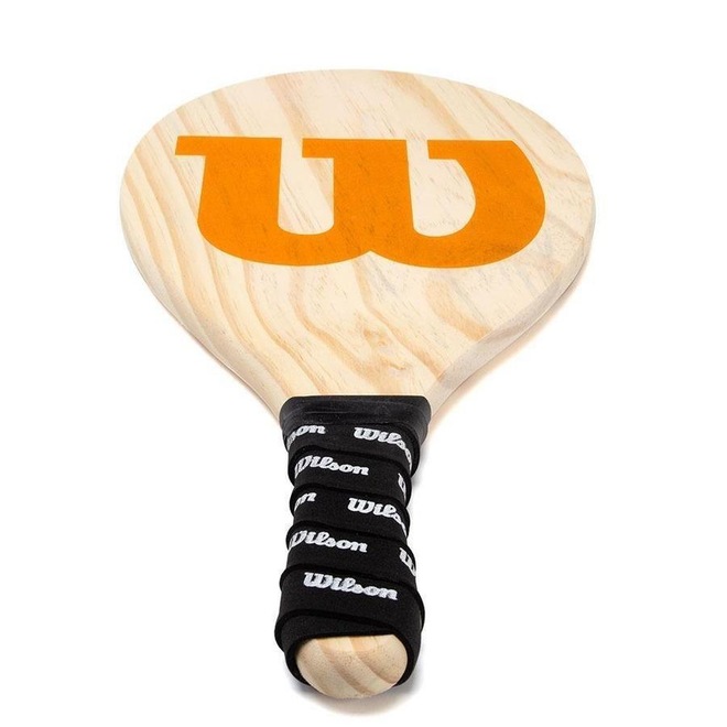 Conheça as características do Kit Frescobol Wilson Logo Pinus com 2 Raquetes e 1 Bola - Laranja e Preta - Perfil: Iniciante - Composição: Madeira Pinus (raquete), Borracha (bola) - Descrição: Kit com 2 raquetes e 1 bola, Logo Wilson em evidencia nas faces das raquetes, sendo o logo laranja em uma e o logo preto em outra, grip envolto na empunhadura para dar mais conforto e aderência, bola azul em borracha resistente, tudo bem acomodado num saco personalizado - Empunhadura: Com grip para maior aderência - Garantia do Fabricante: Contra defeito de fabricação - Origem: Importado.