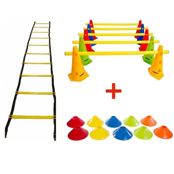 Kit Funcional YangFit com Escada de Agilidade + Cones -10 Unidades + Barreira - 5 Unidades + Chapéu Chinês - 10 Unidades