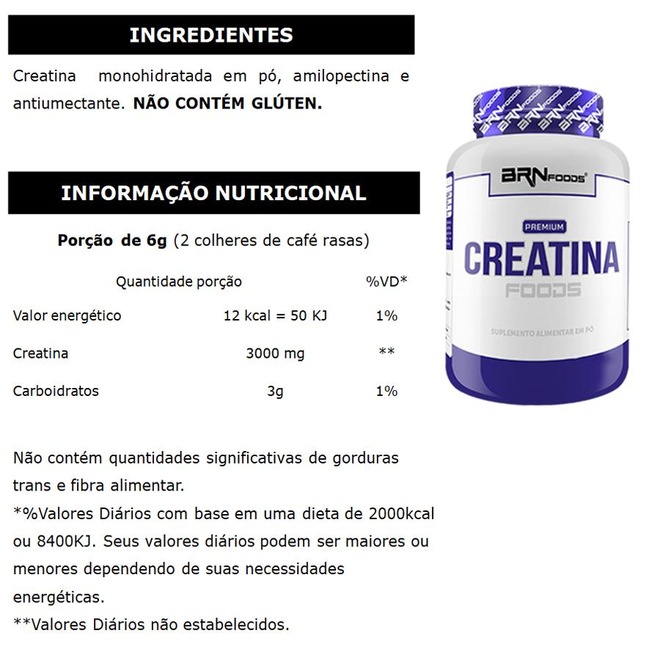 c) CREATINA: Misturar 6g (1 colher de café) de Creatina em 100ml (1/2 copo) de água.