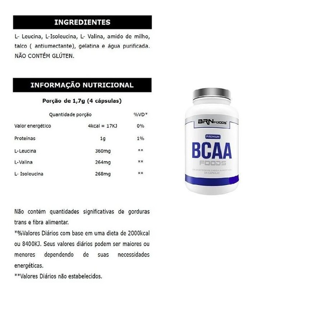 b) BCAA: Ingerir 4 capsulas ao dia.