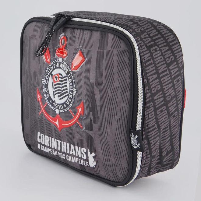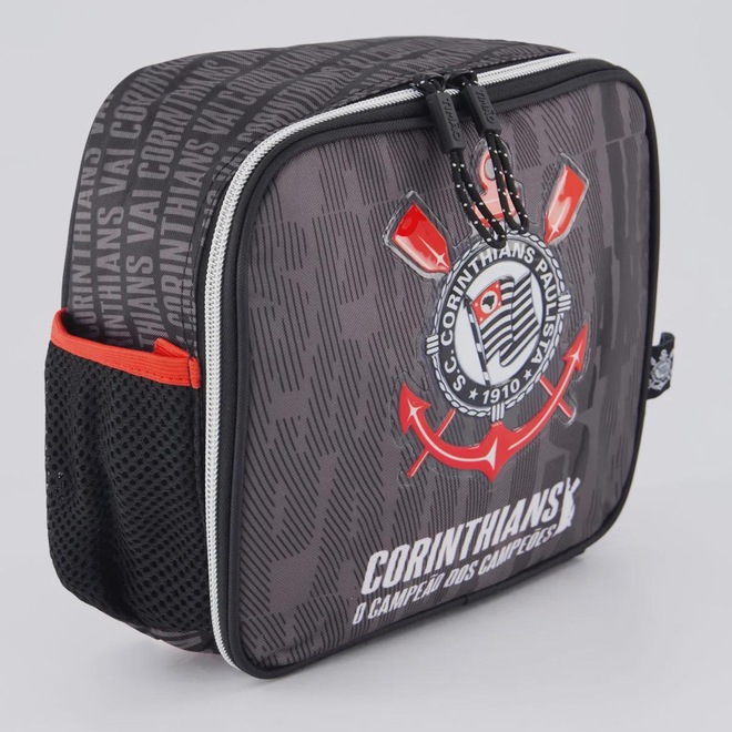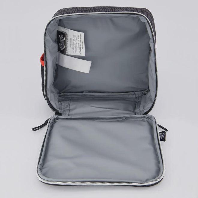 Mochila Dimensões aproximadas (A x L x P): 37 x 33 x 14 cm Abertura/fechamento: Zíper bidirecional Composição: 80% Poliéster e 20% PVC Compartimento: Um principal amplo Alças: Uma manual e duas para os ombros Cor predominante: Cinza Capacidade/ Volume: 20 L Peso aproximado: 360 g Porta-notebook: Não Porta-garrafas: Sim Origem: Importada Clube: Corinthians Escudo: Aplicado Idade: Juvenil Gênero: Unissex Bolsos: Não Tamanho único Lancheira Dimensões aproximadas (A x L x P): 19 x 22 x 9 cm Alças: Uma de mão e duas para os ombros Compartimento: Um principal amplo Composição: 100% Poliéster Clube: Corinthians Capacidade/ Volume: 4 L Cor predominante: Cinza Peso aproximado: 200g Escudo: Emborrado Origem: Importado Gênero: Unissex Tamanho único