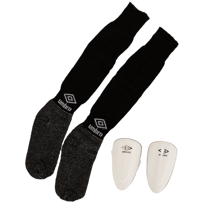 Proteção e conforto para os pequenos atletas com o Kit Infantil Umbro Caneleira + Meião.